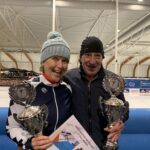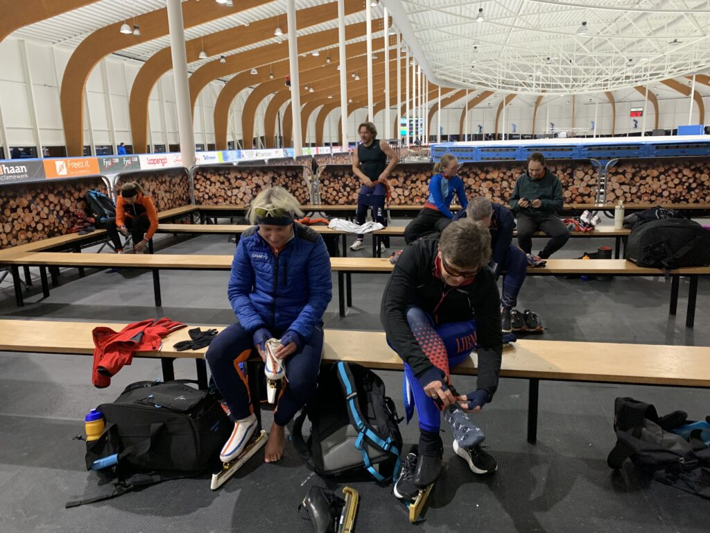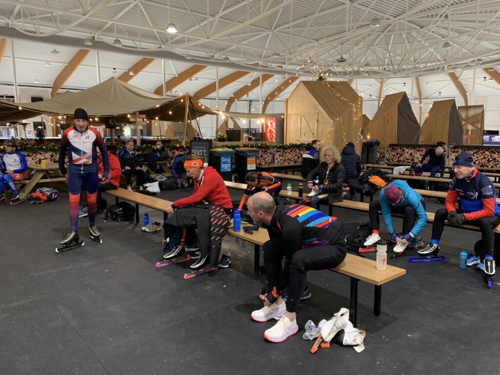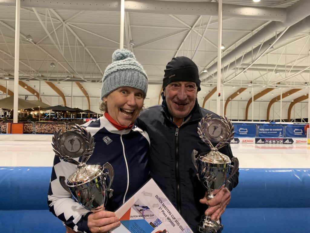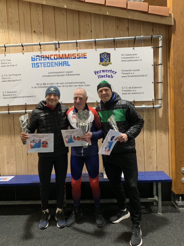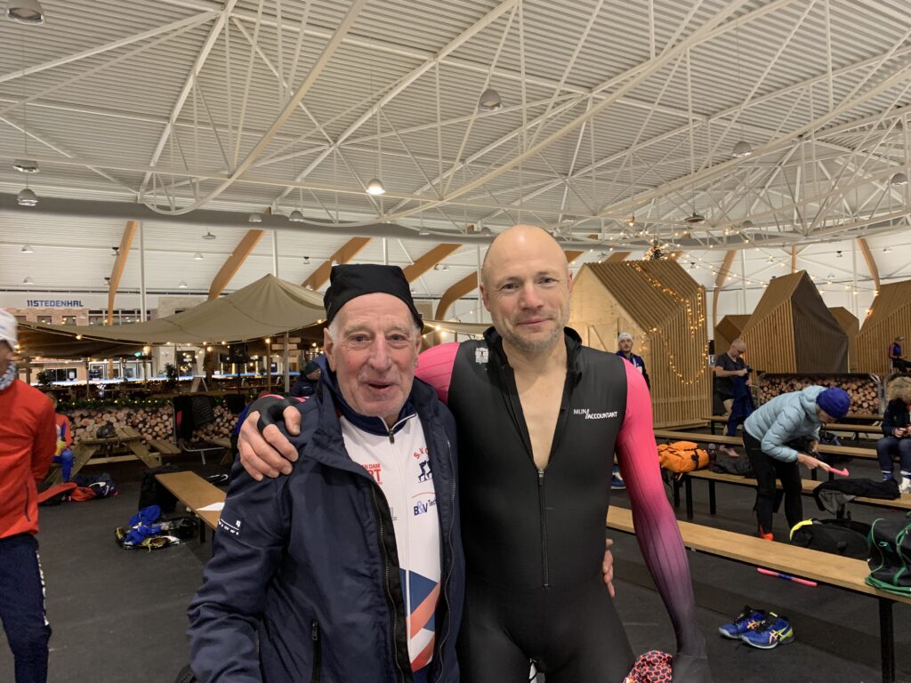 Arjan Elferink (M50) en Kees Verdouw (M80) stonden vooraf aan de finale beiden met 180 punten bovenaan in het tussenklassement. Nadat de 1500m van Arjan in een tijd van 1.59,82 (97,55% van het WR van 1.56,89) al op de klokken stond, kwam er nog een omhelzing tussen de mannen met “succes” en mocht Kees naar de start van zijn 3km. Hij reed met 5.31,46 een geweldige tijd en even dacht hij ook dat hij het wereldrecord had verbeterd. Hij bleek er uiteindelijk 13/100e boven te zitten! Dit was genoeg voor de winst van de avond en daarmee, met een puntentotaal van 330, ook de winst in het eindklassement.